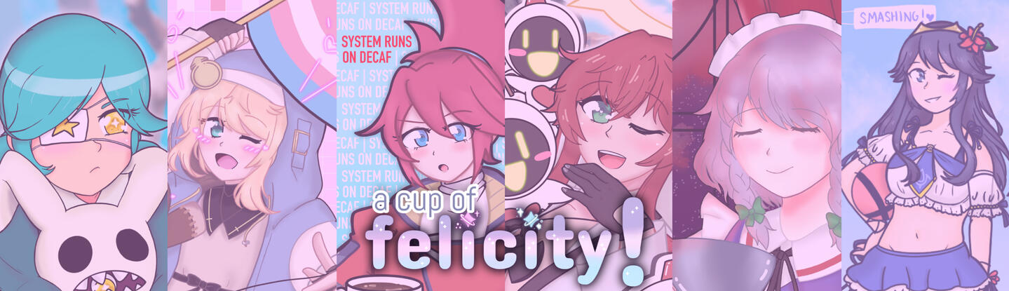 Hi! I'm Felicity/Felix (he/she/they) but people call me Feli for short! I'm a magical girl vtuber, character designer, illustrator, video editor, youtaite, merch maker, and cosplayer based in the United States.I enjoy drawing my own original characters and concepts as well as fanart for fighting games, magical girls, and other games and media that bring me joy!I aim to be a full time content creator by streaming and vtubing, uploading content on YouTube, creating art and commissions, and selling merch designed by me on my online store and at conventions in artist's alleys!